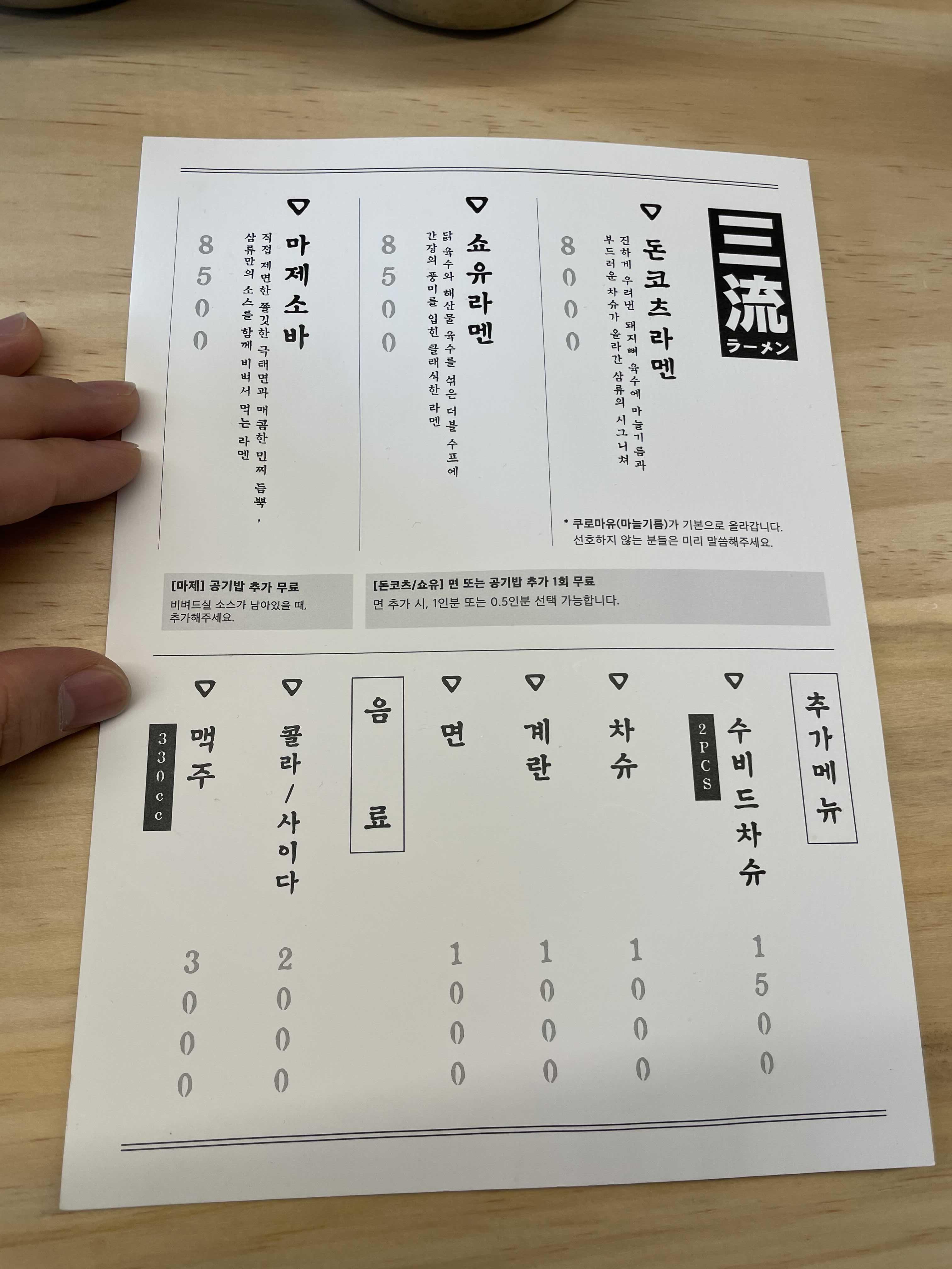 쇼유와 돈코츠라멘만 주문가능하다