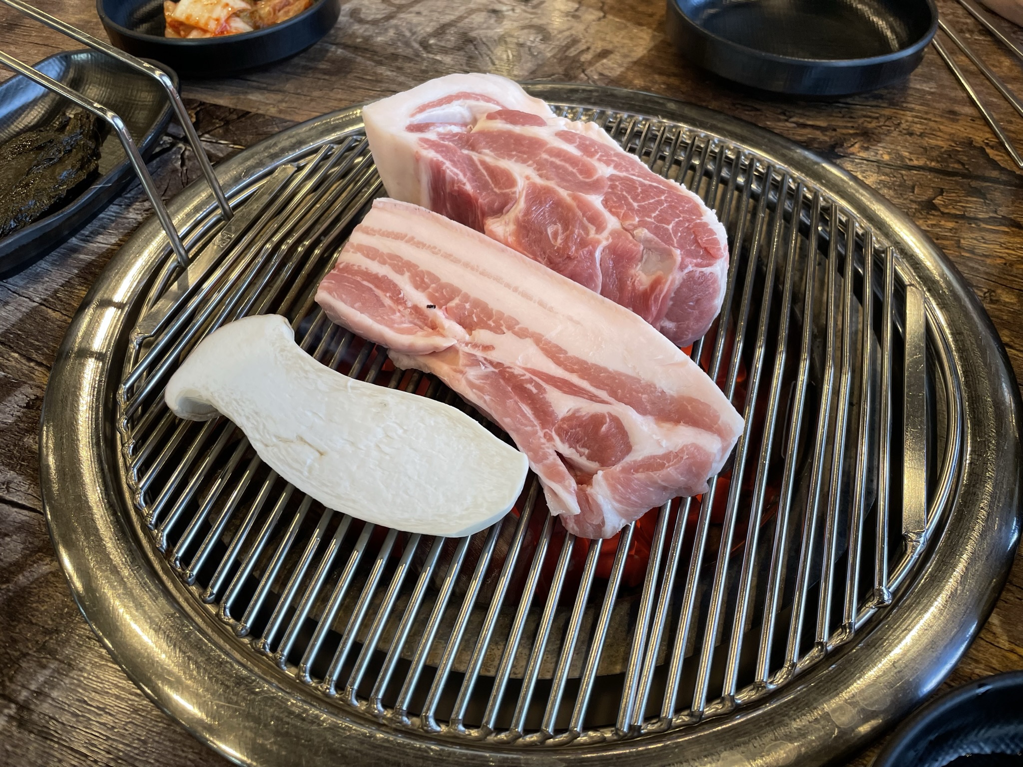 큼지막한 목살과 삼겹살이 나온다.